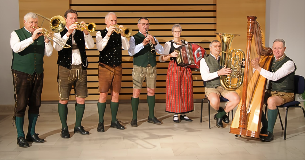 Wir kommen aus dem Mürztal rund um die Region Bruck/Mur. Die Besetzung besteht nach Tiroler Vorbild aus 2 Flügelhörnern, Klarinette, Posaune, Tuba sowie steirische Harmonika und Hackbrett.